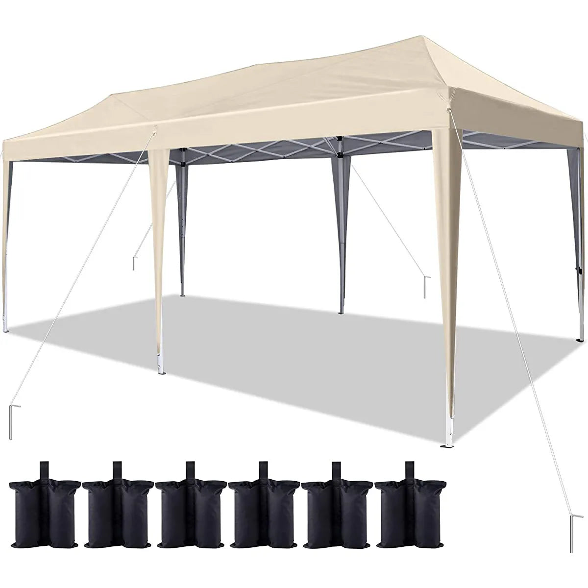 The new upgraded canopy tent 10x20 comes with 6 free sandbags, ropes, and stakes. Sandbags can be tied to the tent legs to add extra stability. Even in windy weather, you don't have to worry about the tent being shaken by the wind.