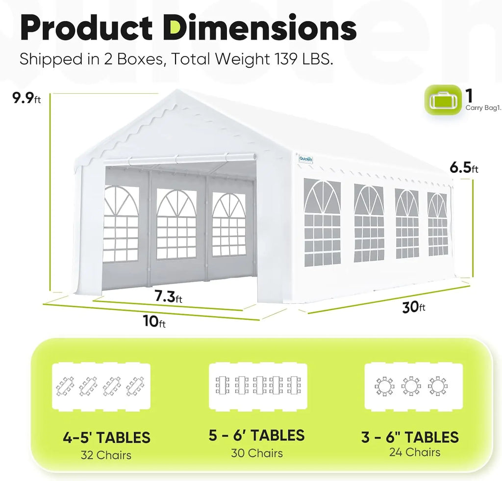 - Q: How many tables fit in a 10x30 tent?