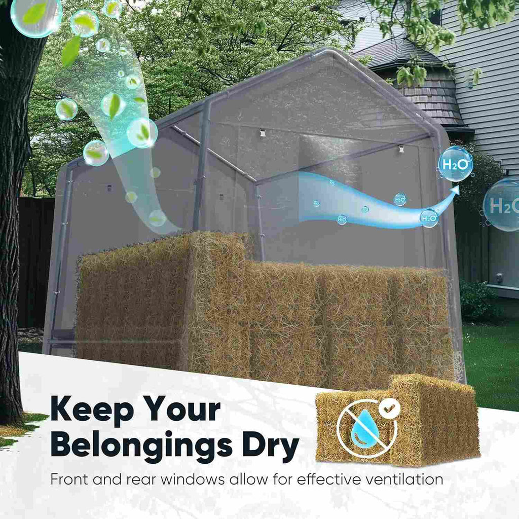 Shield your motorcycle and outdoor gear with the Quictent Heavy Duty 6x8FT Carport Shelter. This portable garage features roll-up mesh windows and a reinforced frame for optimal protection and versatility.