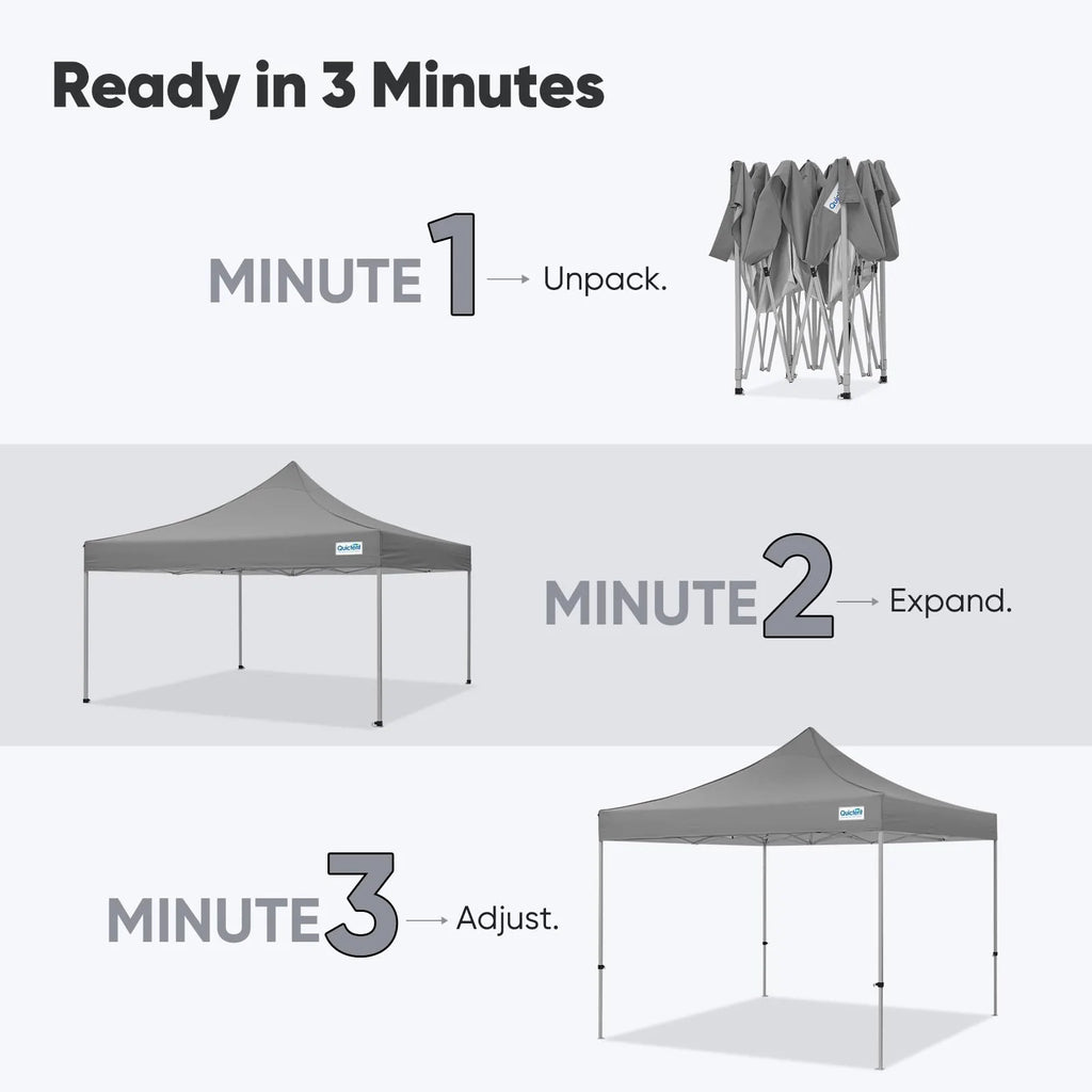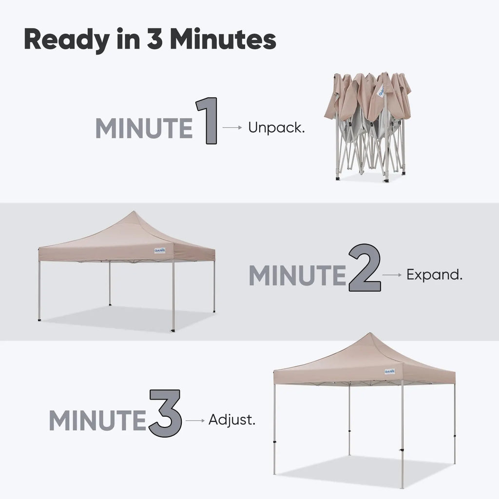 | 3 Sidewall | 10x10/10x15/10x20 | 500D Oxford, Alloy Steel | 47/60/80lbs | 3~5mins | ✓ | ✓ | ✓ | ✓ | ✓ |