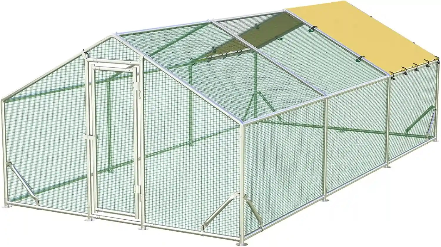 - A: No, it's not a full-tarp. Our original design includes a half cover for the top of this chicken run.